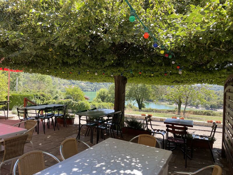 Le restaurant est situé à 5 minutes de Poncin, juste en face de l’île Chambod, dans le village de Merpuis.
